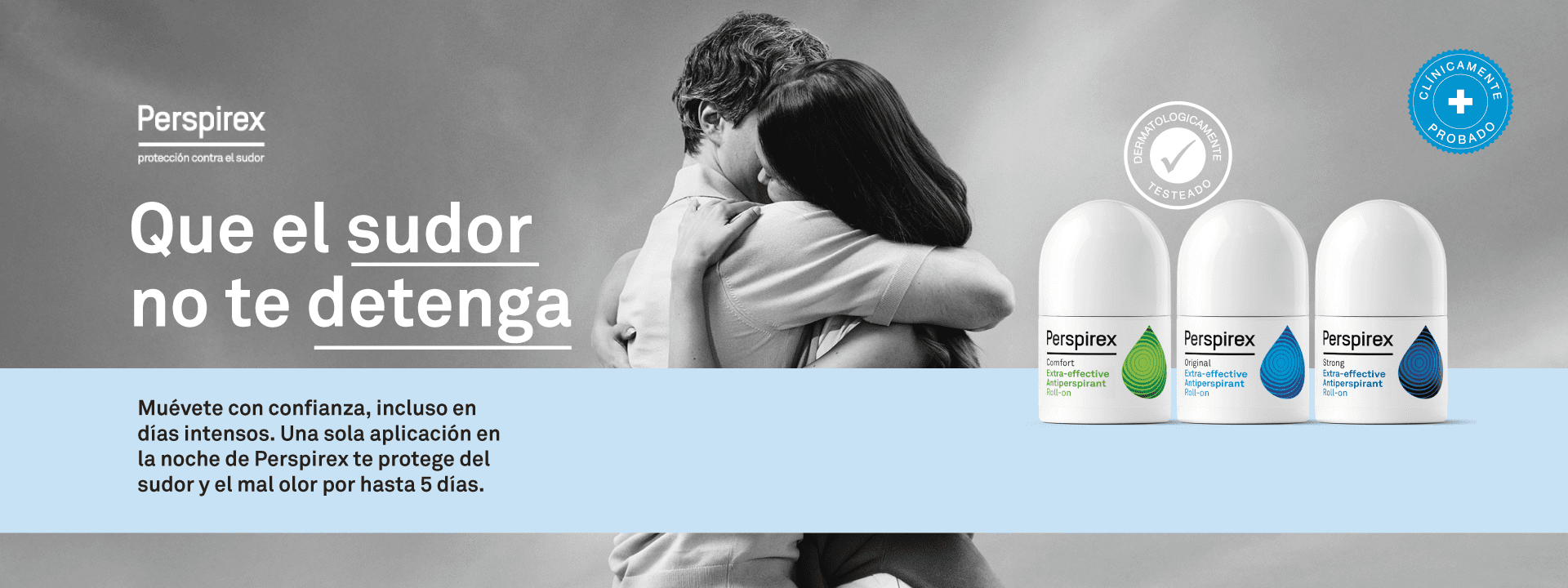 Perspirex es un antitranspirante que soluciona de forma efectiva el problema de exceso de sudoración en las personas, devolviéndoles la confianza y la seguridad en sí mismos.