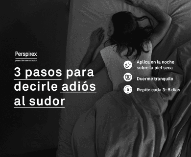 Aplique Perspirex por la noche antes de acostarse ya que las glándulas sudoríparas son menos activas por la noche. Cuando comience, use Perspirex todas las noches, hasta que haya logrado el efecto deseado, generalmente dentro de 1 semana. Permita que Perspirex se seque completamente después de la aplicación.